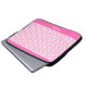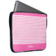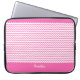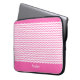 Esta bolsa de laptop 15-17 do neopreno" caracteriza um teste padrão de vigas do rosa quente como elas ziguezague horizontalmente através do tecido contra um fundo branco entre uma parte superior e uma beira da parte inferior do rosa quente. Há um placeholder para sua escolha do nome, das iniciais ou do monograma.