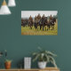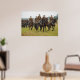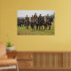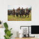 Um poster mostrando cavaleiros cavalgando os cavalos.