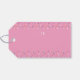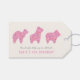 Esta etiqueta de presente favorita do partido chicote apresenta um trio de doces biscoitos animais em forma de camelo, girafa e leão. Cada biscoito é decorado com um glacé rosa brilhante e alguns borrifadores arco-íris. Por baixo da ilustração lúdica está o ditado "obrigados para nos ajudar a celebrar", seguido do nome do aniversariante ou menina. No verso da etiqueta há um simples padrão de borrifagem arco-íris com o mesmo fundo rosa brilhante, junto com um espaço para adicionar o nome do recipiente do presente. Esta design era para a festa de aniversário de uma criança, mas eu acho que seria perfeita para um chá de fraldas também.