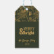 Elevem seu presente de Natal com um toque pessoal! Esta elegante etiqueta de presente apresenta um fundo verde florestal rico, adornado com um lindo e intrincado padrão de poinsetos de folhas de ouro falsas, pinecones e galhos verdes. O clássico design é a forma perfeita de adicionar um talento sofisticado e personalizado à sua garrafa de vinho favorita. A etiqueta está pronta para ser personalizada com um nome de família e o ano. É o toque final ideal para seus presentes.