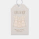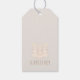 Etiqueta de presente personalizada de Páscoa com belos coelhos e elegante texto "Hippity Salto" em bege clássico e ouro com tipografia divertida e minimalista. Simples, elegante, fofo e chique. Personalize com o nome e o slogan de Páscoa curta.