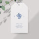 Chic com elegância jovem. Esta suja etiqueta de presente de casamento azul e branco exumenta um tom fresco, moderno e jovem. O design apresenta um adorável monograma elegante de casal floral, contra um fundo branco nítido e o seu obrigado de texto. Correspondência perfeita para todos os outros itens na coleção.