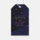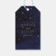 Um design ousado e moderno com estrelas que brilham brilhantemente com ouro falso num céu noturno pintado para uma celebração do amor que brilha para sempre no nosso universo. (note que o ouro estará no impressão e não será prensado em folha de alumínio.)