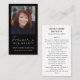 Este simples, mas elegante, cartão de oração cristão, apresenta uma design limpa e minimalista e inclui uma fotografia do carinhoso partido, bem como do seu nome e ano de nascimento e que passa com as palavras "Para sempre em Nossos Corações" escritas num moderno, branco e escrito em letra escrita caligráfica contra um fundo negro elegante. No verso está o texto do Salm 23, que você muda para qualquer texto que você preferir. Personalize facilmente este cartão memorial funerário usando as caixas de modelo de texto. Para alterar fontes ou cores ou reposicionar caixas de texto em qualquer um dos modelos, clique em "Personalizar" e role para além das caixas de modelo de texto para clicar em "Editar usando a ferramenta design". Se precisar de ajuda adicional para ajustar qualquer um desses modelos, aproveite o serviço gratuito do Zazzle em https://www.zazzle.com/live ou entre em contato comigo através do sistema de mensagens do Zazzle. Além disso, se precisar de algo que não veja nesta coleção, por favor, avise-me. Eu ficaria feliz em design para você. Por favor, observe que eu crio os designs, mas toda a impressão e envio é feita pela Zazzle em suas instalações de produção, de modo que, se houver algum problema com seu pedido, entre em contato com o suporte ao cliente deles em 1-888-892-9953 ou https://www.zazzle.com/about/ask