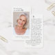 Estes cartões de oração fotográficos do tamanho de uma carteira são fáceis de carregar numa carteira ou fazer-os de uma cuidadosa saudação para amigos e familiares que compareçam a um funeral, a um serviço de memórias ou a uma celebração da vida. Este cartão foi projetado com o Salm vinte e três, mas você pode mudá-lo para outra oração ou poema usando o botão Personalizar. A fotografia é para fins ilustrativos e pode ser alterada para uma de vocês.