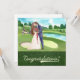"Celebrar a união de dois corações de golfe com nosso cartão de parabéns exclusivo projetado para os recém-casados que compartilham uma paixão pelo jogo. Desejando [Nome da Noiva] e [Nome do noivo] uma vida inteira de passagens, pássaros e momentos inesquecíveis tanto no curso quanto fora dele. Prepare-se para um futuro cheio de amor, felicidade, e inúmeras rondas juntas. Parabéns no seu buraco-em-um de um casamento!"