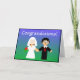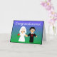 A noiva parece bem, mas o noivo parece um pouco preocupado com este cartão de casamento. Parabéns... eu acho!