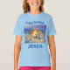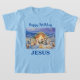 Esta camisa apresenta uma cena de natividade com personagens infantis, animais bebês e as palavras "Feliz Aniversário Jesus." Você pode personalizar a camisa para dizer o que quiser. Corresponde à nossa Festa de aniversário para o tema da festa de Natal de Jesus.