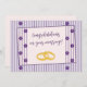 Os Parabéns da placa plana do seu Casamento são perfeitos para uma mensagem contemporânea de parabéns. O design de paisagem de na moda apresenta faixas violetas, uma área de mensagem de pincel e linhas de flores roxas profundas. Personalize a mensagem na parte traseira do cartão com seu(s) nome(s) e uma mensagem pessoal para os recém-casados, ou deixe o vazio de mensagem para adicionar uma nota manuscrita de parabéns. Para obter informações sobre design personalizado ou assistência com personalização, entre em contato conosco em info@KBMD3signs.com.