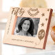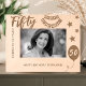 Celebre o incrível marco de um aniversário de 50 anos com esta moldura de madeira gravada "Brindes a 50 Anos". Adornada com estrelas festivas, uma faixa comemorativa e uma mensagem personalizada de aniversário, esta moldura é a lembrança perfeita para homenagear cinco décadas de memórias maravilhosas. Personalize com um nome para tornar este presente único verdadeiramente especial. Ideal para uma celebração de 50 anos, esta moldura encantadora traz um toque de calor e nostalgia para qualquer decoração.