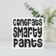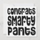 Felicita alto e claro em estilo divertido o formando ou qualquer um que seja felicitado por esta grande tipografia ousada Felicita Smarty Pants em uma fonte negra e funca com motivos cardíacos. Personalize facilmente a sua mensagem no sentido inverso. Você também pode alterar o fundo branco para outra cor se desejar, bem como a fonte e a cor da saudação no verso, por meio da opção Personalizar Mais.