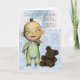 Parabéns Um Cartão de Bebê com bebê de desenho animado e ursinho de peluche, com um cobertor com topo de folha e trilha de flor