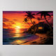 Paraíso dramático e vibrante e colorido sobre o oceano com palmeiras e uma cabana tiki. - Poster gerado pelo Ai