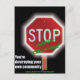 Parar Cartaz de perseguição de gangues com sinal de parada vermelho e informações no verso