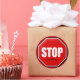 Um adesivo de sinal de parada com modelo para o seu texto.