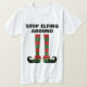 Pare de brincar de camisa engraçada de Natal para ele. Legal design com pés de elfo longos. Camisetas de cores personalizadas para festa de Feriado.