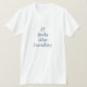 "Parece domingo" com cores azuis e vermelhas em uma camiseta branca