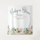 Esta linda tapeçaria vertical feminina pode ser usada como um fundo para fotos ou decoração de parede em um chá de bebê. O design tem bordas de rosas em cor-de-rosa e branco em aquarela com folhagens espalhadas. As palavras "Baby in Bloom" são escritas em uma fonte manuscrita atraente em um layout arqueado. Esta tapeçaria é um ótimo fundo para fotos em um chá de bebê. Personalize o modelo de texto com o nome da futura mãe e a data do chá.