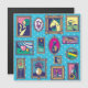 Há fotos na parede. Linda galeria com várias fotos de abstrato wall. Galeria com ilustrações de abstrato. Galeria, ilustração, abstrato, parede, fundo, padrão, decor, papel, quadro, árvore, casa, branco, poster, interior, caixa, preto, criativo, pintura, palco, desenho