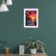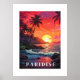Poster é mostrado com um impressão de arte de uma bela praia tropical ao pôr do sol. Gerado pelo AI Personalizar este item ou comprar como está. Imagem do stock Pixabay.com