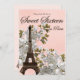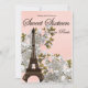 Estes convites deslumbrantes em tons cor-de-pêssego macio e castanhos com a Torre Eiffel e o florescimento do fundo da cerejeira são perfeitos para uma primavera em Paris, tema doce dezesseis festas de aniversário. Esses convites podem ser personalizados com seu próprio texto na parte frontal e traseira deste cartão. Se precisar de ajuda para personalizar este cartão, envie-nos um e-mail para chrissyh@chrissyhstudios.com. Ilustração digital © Chrissy H. Estúdios, LLC. Todos os direitos reservados.