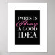 Este impressão de "Paris é sempre uma boa ideia" faria uma peça de arte excelente no seu escritório ou quarto.