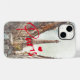 Esta capa de telefone celular usa uma pintura em esboço aquarela da icônica Torre Eiffel, vista através de uma rua lateral. A palavra "Paris" em vermelho vivo com um coração adiciona um toque na moda e moderno - você pode facilmente redimensionar, apagar, mudar a cor ou mover este texto ao redor, se desejar.