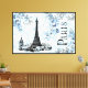Bela impressão da vintage Paris na canvas em múltiplos tons de azul, com pulgas de lis, flores e folhas florescendo. Escuridão negra em torno de toda a design faz uma apresentação impressionante.