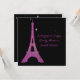 Chic Paris temeu o Sweet 16 Birthday Invitation, feito em fundo preto com estrelas como faíscas, e uma Torre Eiffel rosa com aspecto brilhante, na frente. A parte de trás do convite é feita com o mesmo fundo preto, com uma área de texto com aparência brilhante rosa. Personalize o texto cor-de-rosa e branco, para a celebração de 16 anos às suas filhas. Produtos correspondentes disponíveis.