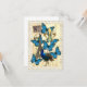 Colagem digital feminina romântica e bonito de pássaro pavão e borboletas azuis e torre eiffel, Paris, França, num fundo postal de papel vintage e carimbo francês com fleur de lys dourada. copyright Oconnart