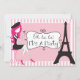 Paris pensou no convite de aniversário com um vinho de provando feminino. Há fundos de faixas cor-de-rosa na frente e atrás e também um gráfico da Torre Eiffel. clipart de Prettygrafik
