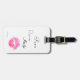 A fenda da bagagem tem um beijo feito com batom rosa brilhante e tem nomes de viagem para Paris, Itália e Roma. Perfeito para viagem de diversão em qualquer lugar.