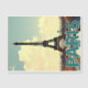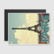 Carte postale magnétique représentant de façon vintage et de fiction la Tour Eiffel vue de la colline de Chaillot en automne