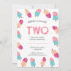 Tenha uma segunda festa de aniversário de gelo (segundo) para a sua pequena! Este adorável convite de aniversário apresenta um colorido sorvete de cor azul e rosa, cor d'água, picolé, que é bonito e perfeito para um aniversário de verão. Todos os detalhes, incluindo (exceto idade), são personalizáveis. (Outras idades e cores também disponíveis no meu compro!)
