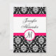 Disposição do convite do rosa quente do damasco do monograma do casamento por Elke Clarke©2009. Gráficos licenciados. Personalize com seus nomes do monograma e cores do casamento. Adicione toda sua informação do casamento na parte dianteira e na parte traseira do cartão usando alertas fáceis de usar do menu de Zazzle ou contacte-nos para projeta.