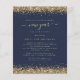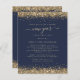 NOTA Há duas opções de papel a escolher para este tamanho (4,5 x 5,6") na faixa de Orçamento. Para este produto, eu recomendaria muito o semibrilho, que é um estoque de cartão de 110 gsm, semelhante em espessura a um cartão postal. A opção Satin é um papel muito mais fino, 80gsm. O padrão é definido como semirbrilho. Marinho Azul Véspera de ano novo Convite de festas de Script Glitter Dourado de Orçamento. Uma borda de brilho falsa está em cada lado superior e inferior, e Ano Novo está em um script de na moda com baloiços. Personalize facilmente o texto para seus próprios detalhes. Você também pode alterar as cores do texto e do plano de fundo por meio da opção personalizar mais, se desejar.