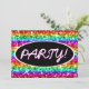 Convite com um design impresso moderno com as estrelas dispersadas sobre do "um fundo estilizado e um texto do teste padrão listrado do arco-íris do olhar sequin" no branco em um fundo oval preto. Um design customizável para que você personalize com seus próprios texto, imagens e ideias. Note por favor isto é uma imagem digital impressa da arte. O produto não brilha nem não contem o brilho real ou os sequins.