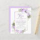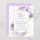 Honra uma mulher especial com este Convite de aniversário elegante e feminina. 70 é escrito em texto roxo grande. O Partido da Surpresa de Aniversário segue. O nome do convidado é também em letras de maiúsculas roxas. O resto do texto é cinza de pomba mole. Os detalhes da comemoração de 70 são cercados por uma moldura de ouro cônico que é decorada com rosas roxas e folhas verdes de sábio. Enquanto é um design tradicional, a folhagem botânica aberta e arejada e o texto lhe dão uma vibração contemporânea. O convite de volta é um roxo suave. Infelizmente, os 70 algarismos não são editáveis. Se precisares de mais um ano, terei todo o prazer em fazer um design personalizado para ti.