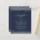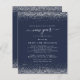 NOTA Há duas opções de papel a escolher para este tamanho (4,5 x 5,6") na faixa de Orçamento. Para este produto, eu recomendaria muito o semibrilho, que é um estoque de cartão de 110 gsm, semelhante em espessura a um cartão postal. A opção Satin é um papel muito mais fino, 80gsm. O padrão é definido como semirbrilho. Os envelopes podem ser ligeiramente maiores que o próprio convite. Convite de festas de Anos novos Azuis de Script de Glitter do Orçamento. Uma borda de brilho falsa está em cada lado superior e inferior no marinho clássico, e Ano Novo está em um roteiro de na moda com oscilações. Personalize facilmente o texto para seus próprios detalhes. Você também pode alterar as cores do texto e do plano de fundo por meio da opção personalizar mais, se desejar.