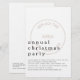Convite Grande Minimalista de Partido de Feriado de Funcionário de Orçamento. Um alternativo maior de 5,5" x 8,5" a um preço orçamentário. Disponível em um STOCK DE CARTÃO SEMI-GLOSS de 110 lb ou em um STOCK de CARTÃO LINEN elegante de 115 lbs de acordo com o padrão (ambos recomendados para convites mais espessos), há também algumas opções de PAPEL FINO (que são ideais para gabinetes). OBSERVE QUE OS ENVELOPES OPCIONAIS SÃO UM POUCO MAIORES QUE O CONVITE A 6,75" x 9" aprox. O cabeçalho é grande em na moda-lowercase com os detalhes abaixo parcialmente sobrepostos ao seu logotipo pintado em segundo plano. Personalize facilmente o texto de ambos os lados para os seus próprios detalhes. Substitua a imagem de exemplo na parte frontal pelo logotipo de sua empresa e clique em personalizar ainda mais para ligar ou desligar qualquer uma das camadas de opacidade, se necessário, para torná-la mais escura ou mais leve.