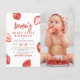 Venham e juntem-se a nós para nos divertirmos, a nossa amora doce está a virar uma! Berry é o primeiro aniversário de um ano. A frente deste cartão orçamental está dividida em duas seções, à esquerda, há o design do convite, e à direita, há uma foto da aniversariante. Escolhemos uma foto modelo de uma criança comendo um prato grande de morangos para corresponder ao tema do cartão. O design de convite apresenta seis morangos aquosos à volta da borda, o nome da aniversariante em letras grandes no estilo da caligrafia, e o "primeiro aniversário de morango" em maiúsculas de serifa no estilo da vintage. Há um pouco de ouro falso entre as duas partes do texto. A parte de trás dos convites é um padrão talhado manualmente. O tipo retrô e a xadrez vermelha são inspirados por potes de morango! Perfeito para comemorações de primavera e verão, e temas ao ar livre e jardim. Advertências para o primeiro aniversário. Clique em "Personalizar este modelo" para editar o texto e carregar a sua própria fotografia. Para edições mais avançadas, use a Ferramenta de Design do Zazzle. Como parte da seleção orçamentária no Zazzle, esta folha não é um tamanho de convite padrão ou qualidade de papel. Se quiser que este design num cartão de convite o encontre na nossa loja ou utilize o Zazzle Make Machine para o transferir para o produto da sua escolha. Observe que as placas são impressas como você as vê na tela quando faz o pedido, portanto verifique novamente se há erros de digitação! Procure na minha loja mais convites de festas de primeiros aniversarios para meninas.