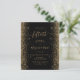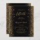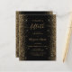 Este elegante convite de festas moderno de 50 anos apresenta bordas falsas de brilho dourado nas bordas esquerda e direita. O texto personalizável combina manuscrito dourado, fontes em copperplate e itálico em um fundo preto. O verso apresenta um design de brilho preto e dourado correspondente.