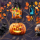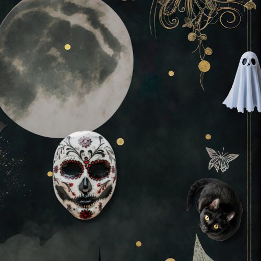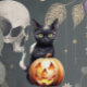 Junte todos com este cartão de dia de Dia das Bruxas, que é um traje adulto. Este design apresenta gatos, abóboras e esqueletos. Você pode personalizar isso ainda mais clicando no botão "PERSONALIZAR".