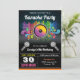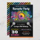 Surpreenda seus hóspedes com este convite para festas de aniversário com tema musical legal, com equalizador colorido e microfones bonitos com tipografia vibrante contra fundo preto. Basta adicionar os detalhes do seu evento neste modelo fácil de usar para torná-lo um convite de tipo único. Sacudir a placa para revelar um padrão colorido de listras na parte traseira da placa.