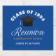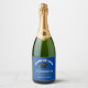 Uma etiqueta de garrafa de champanhe de festa de reunião personalizada clássica em azul real clássico e ouro para um segundo grau, faculdade ou universidade. Personalize com seu nome de escola e sua classe de graduação sob a elegante caligrafia para as etiquetas de celebração personalizadas de alunos excelentes.