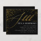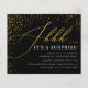 Convites de festas surpresa de Script de Confetti Preto e Dourado de Orçamento. Shhh.. É uma surpresa! Comemore sua festa de aniversário surpresa com esses convites na moda com faux gold foil confetti e script contra um fundo preto. Seus detalhes aparecem na tipografia elegante da serifpografia.