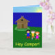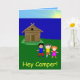 Este cartão ensolarado e colorido representa crianças de sorriso estar na frente de uma cabine do lado do lago. O interior do cartão caracteriza uma precipitação curta mas doce da palavra. Contudo, você pode mudar o texto interno se você gostaria.