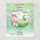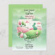 Convide amigos e/ou família para um brunch de Páscoa, seguido por uma caçada de ovos na Páscoa, fundo de nuvens verdes com design Páscoa em verde e rosa na frente.