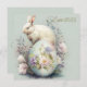 O coelho da Páscoa é pintado em aquarelas macio e pastel, com pelo branco liso e nariz rosa fofo. Seus olhos são brilhantes e amigáveis, e parece estar olhando para o hetero com uma expressão alegre. Esta pintura faz um presente de excelente para a família e amigos para a Páscoa. Espalhe o amor coelho!