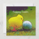 Páscoa de golfe com galinha amarela e bola de golfe com grama verde